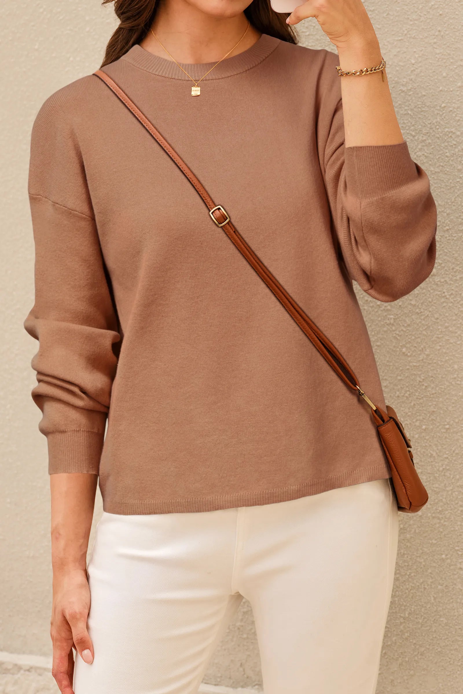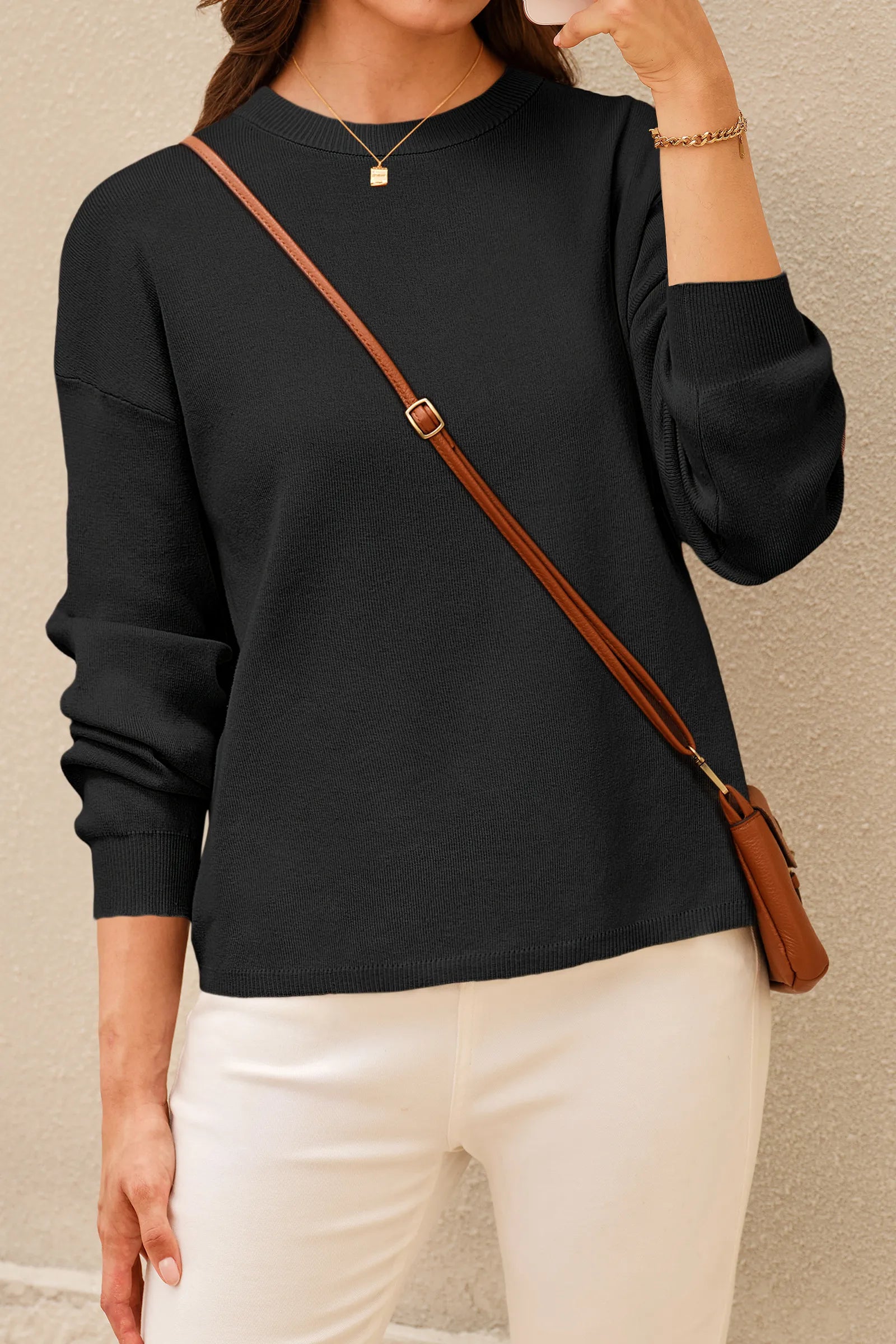 Effortless Minimalism: Classic round neckline, perfect for layering or solo wear, pairs seamlessly with jeans or skirts—elevating your daily wardrobe