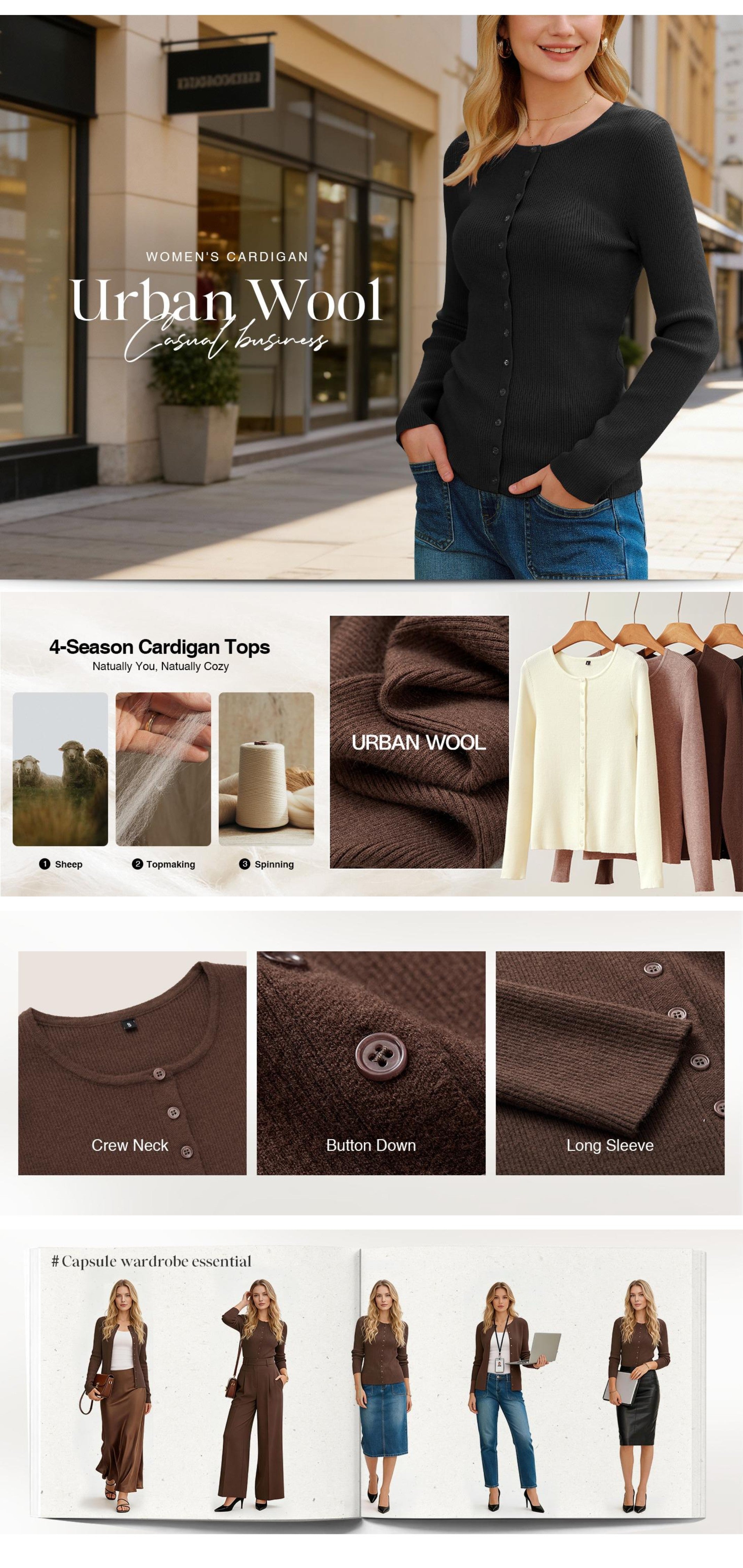 Timeless Details: Cute buttons and classic crewneck let you style it your way, whether buttoned up for refined elegance or left open for relaxed ease