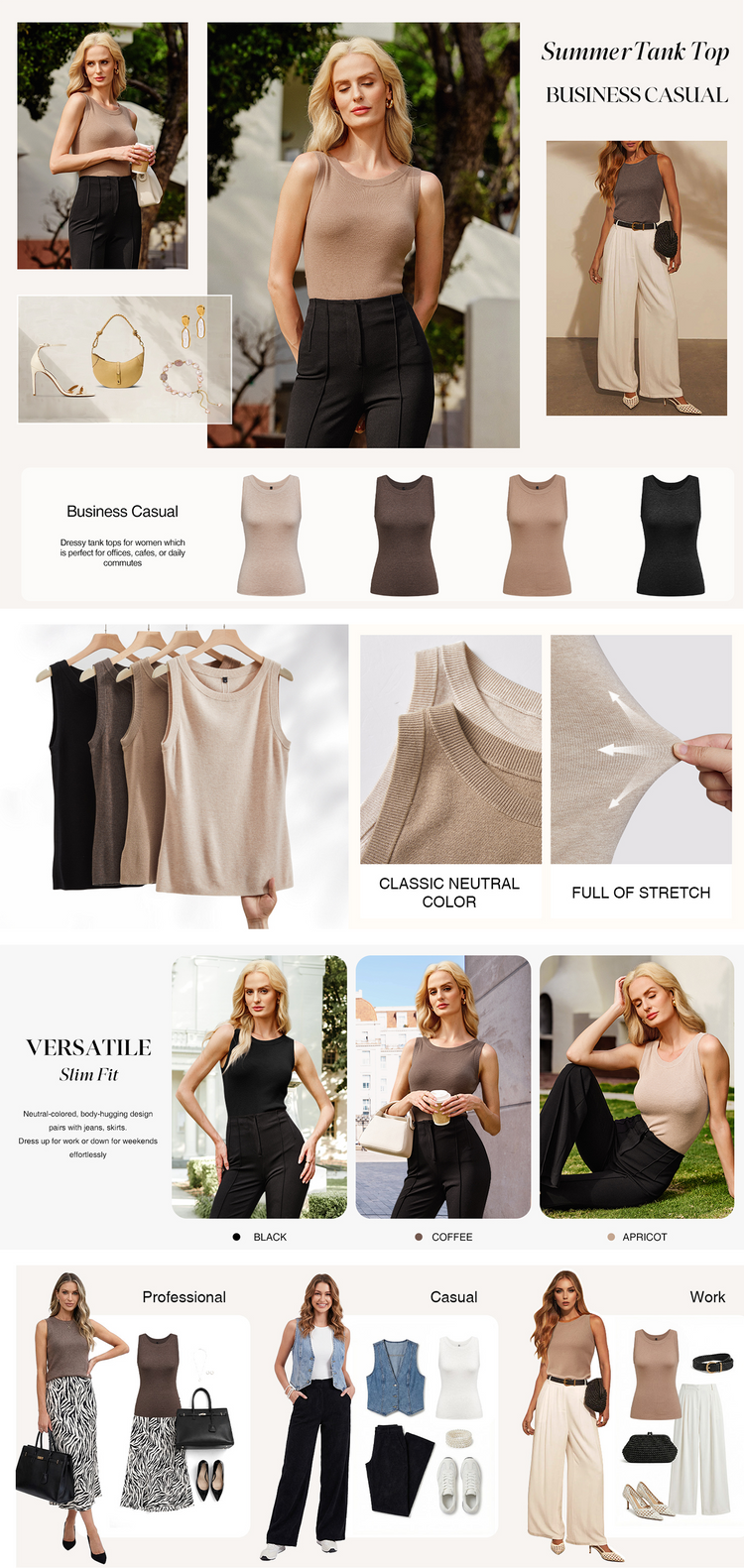 Versatile Slim Fit: Neutral-colored, body-hugging design pairs with jeans, trouser pants, blazers, or skirts. Dress up for work or down for weekends effortlessly