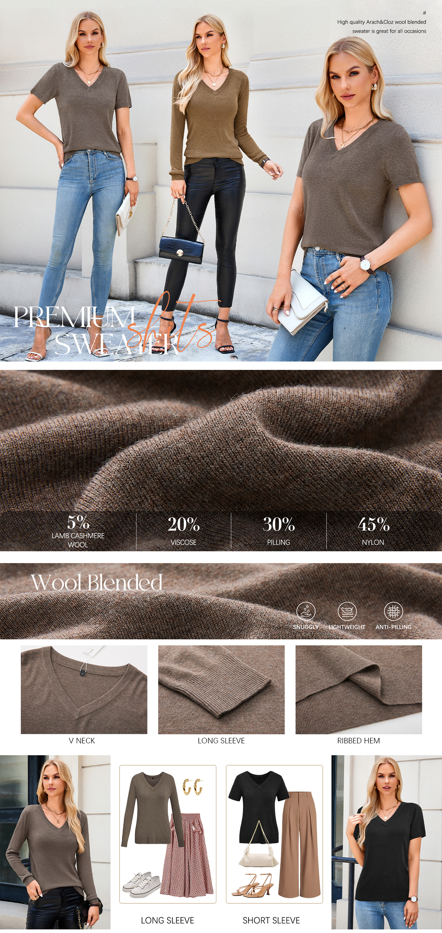 Fabric 5% Wool, 20% Viscose, 30% Anti-Pilling Acrylic, 45% Nylon Feature Wool Blend: Soft and comfortable, wrinkle-resistant and easy to care for, suitable for business commuting. Crafted with 5% wool, 20% viscose for exceptional softness, warmth, and breathability. Perfect for cool weather. Elegance Pullover...